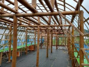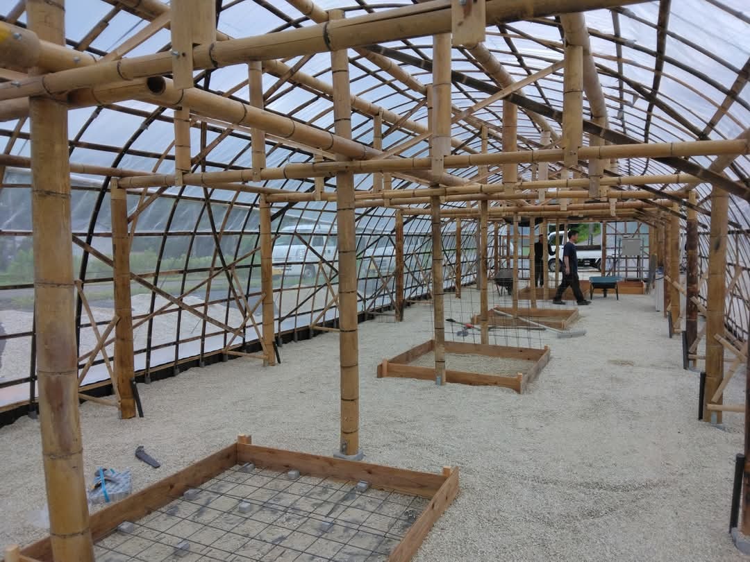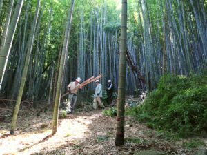 放置竹林の竹を切り出し、骨材として使う「竹ハウス」。